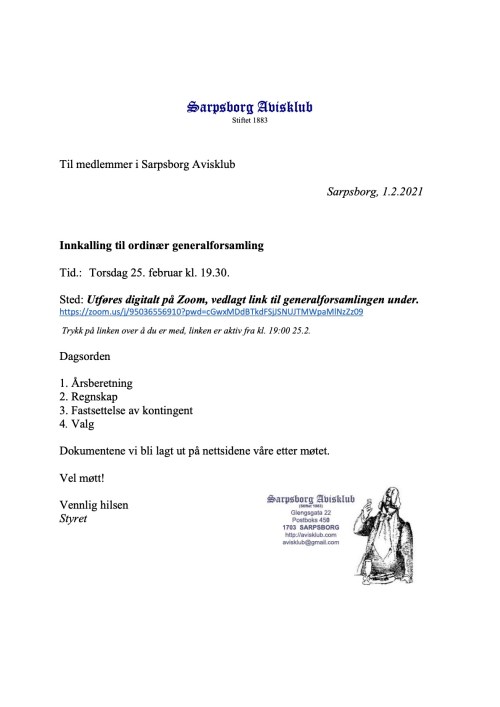 Microsoft Word – Innkalling til generalforsamling Sarpsborg Avisklub 2021