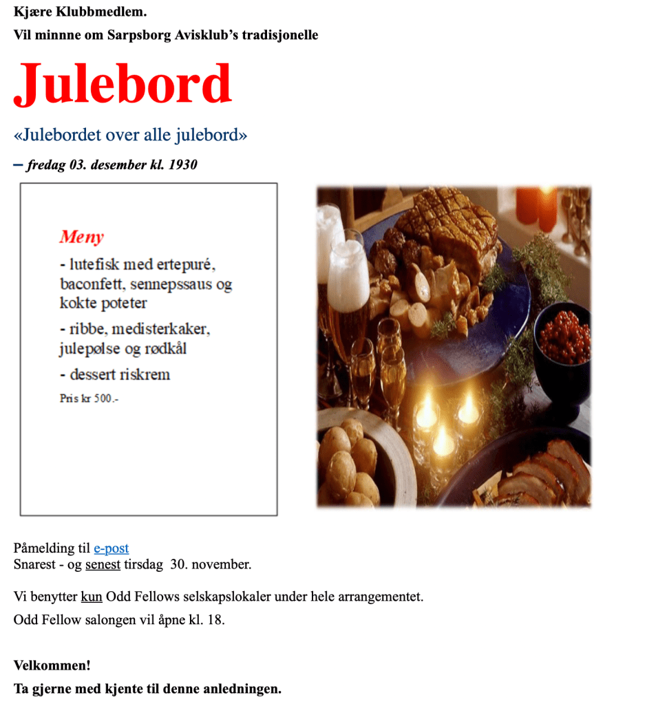 Julebord i klubben 3. desember