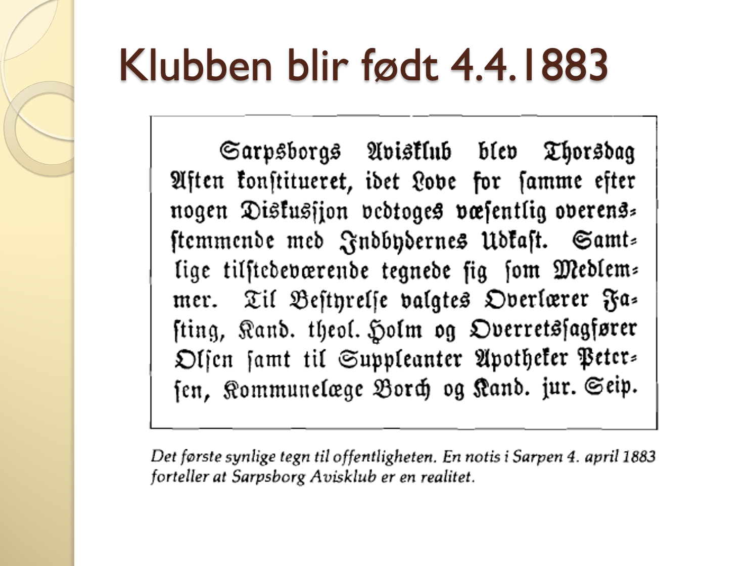 Klubben stiftes 4. april 1883